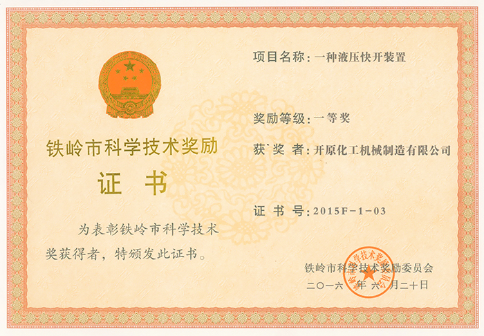 資質(zhì)榮譽(yù)-開(kāi)原化工機械制造有限公司
